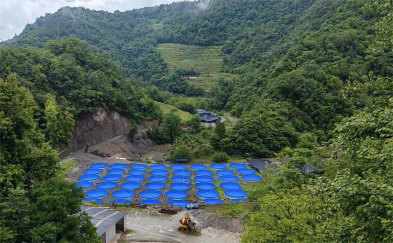 炎炎夏日,走进陕西省安康市白河县宋家镇安乐村快活岭水产养殖有限公司的渔场,只见清澈见底的山泉水潺潺流淌,青山环抱中若干个大小不一的鱼池依山而建、层次分明,鱼儿结队在碧绿的池塘里悠然游动。
